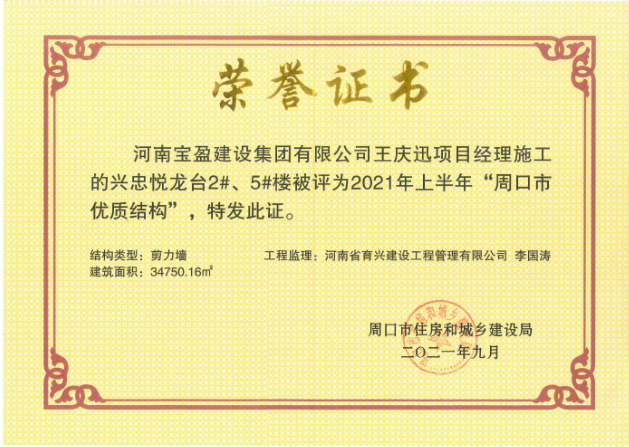 2021年宝盈建设被评为港区年度创新发展先进企业