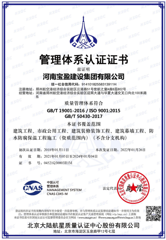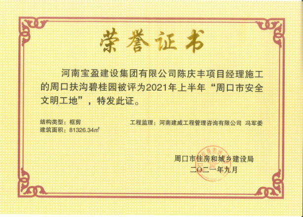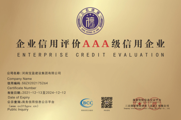 2021年宝盈建设被评为企业信用评价AAA级信用企业