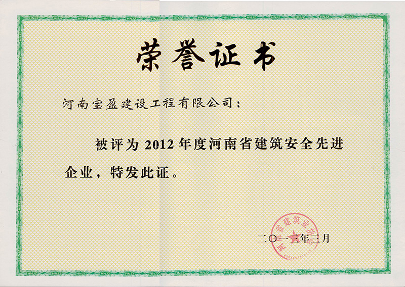 2012年度安全管理先进企业