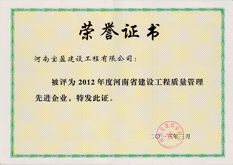 2012年度质量管理先进企业