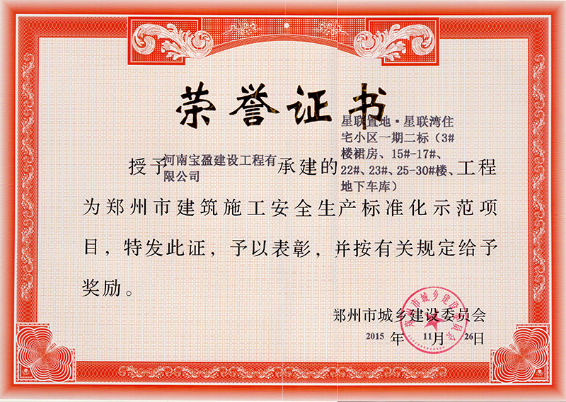 2015年郑州市建筑施工安全生产标准化示范项目