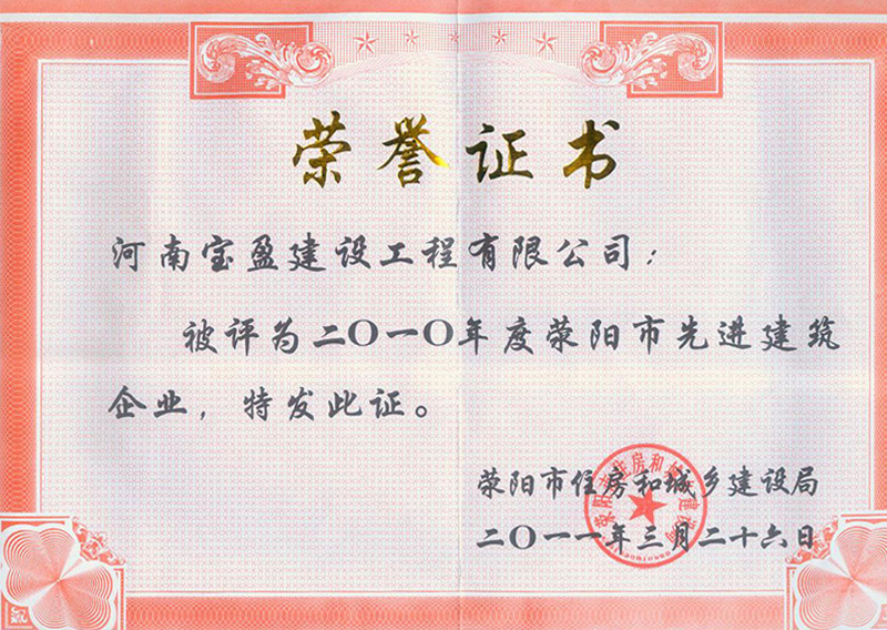 2018年度郑州施工总承包先进企业